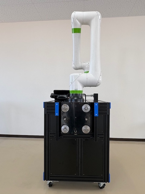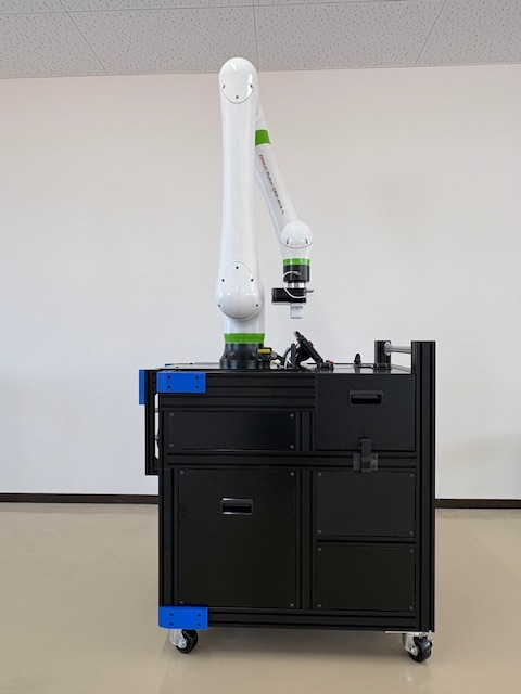 ROBOT CART開発しました 手押し台車に電源、協働ロボット、コンプレッサーを搭載したROBOT CART試作機を開発しました。 高精度な位置決めが可能なコスメック製カップリングで設備と締結することで繰返し精度3μmを可能としました。電源 : HONDA モバイルパワーパック協働ロボット : ファナック CRXシリーズコンプレッサー : SMC CRPシリーズロボットハンド : SMC LEHRシリーズホームページ右にあるインスタグラムのマークをクリックすると動画閲覧も出来ます
